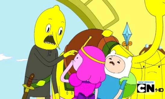 Presumably in the second season, Princess BG went from 18 to 13. And in this episode written by Ward, Banker, Herpich, McHale, Moynihan, and Osborne, she is now too young to rule her land, so the earl names himself regent. Finn, who has a crush on the princess and wants her to stay his age, tries driving Lemongrab away through pranks, but in the end Bubblegum reverts to her real age, choosing her kingdom over her friend. Not as funny as some episodes, but with a certain poignancy.